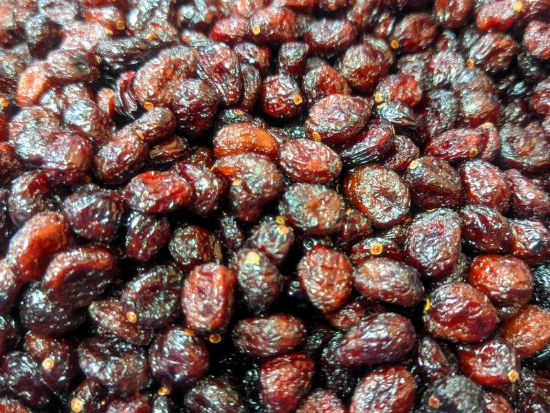 Die Beeren werden vor dem trocknen in Apfeldicksaft getaucht.